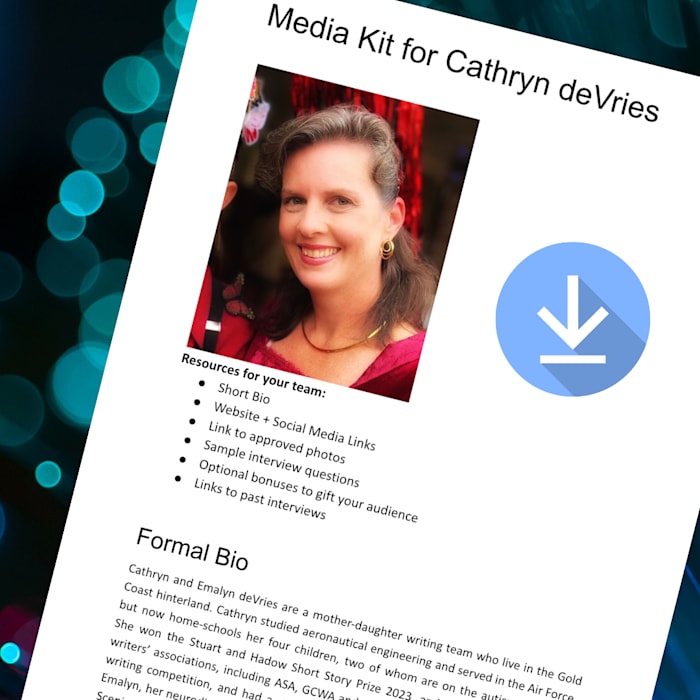 Cathryn deVries is a multi-award-winning fantasy and sci-fi author who explores themes of restorative justice, empowerment, connection with earth and spirit, and finding the true self—all wrapped up in an epic package of immersive world-building and clean romance. She is the author of Son of Osivirius, a standalone science fantasy novella, and The Weaversong Trilogy, a romantic fantasy co-authored with her neurodiverse daughter to be published in 2027.